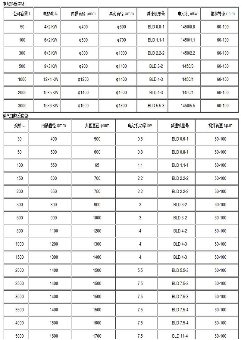 由于用戶因生產(chǎn)工藝、操作條件不盡相同,夾套加熱型式分為電熱棒加熱、蒸汽加熱、導(dǎo)熱油循環(huán)加熱,